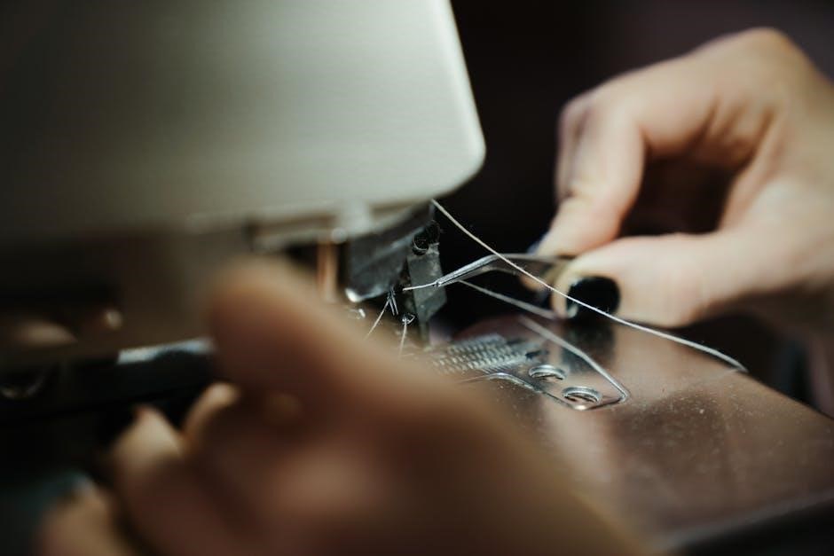 For bobbin threading‚ place the bobbin in the bobbin case‚ guiding the thread through the tension slot. Ensure smooth thread flow throughout the entire process. Incorrect threading can cause skipped stitches or tension issues. Consult the detailed threading diagram in your manual for a visual guide.